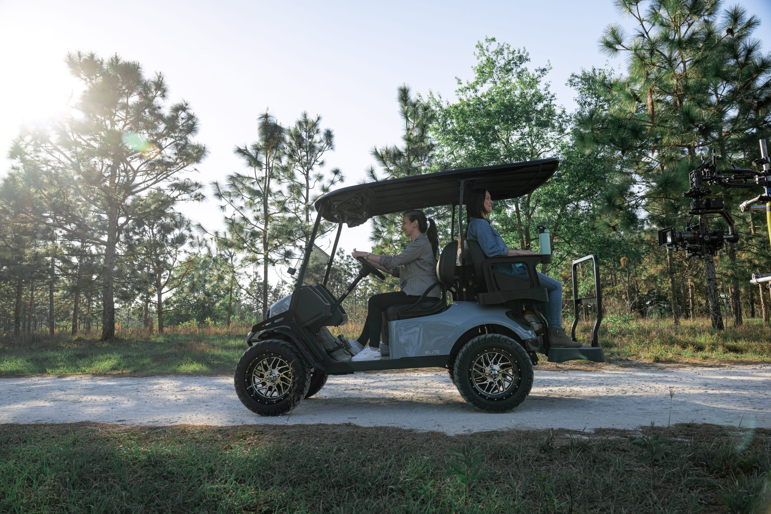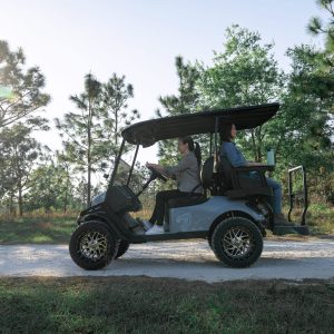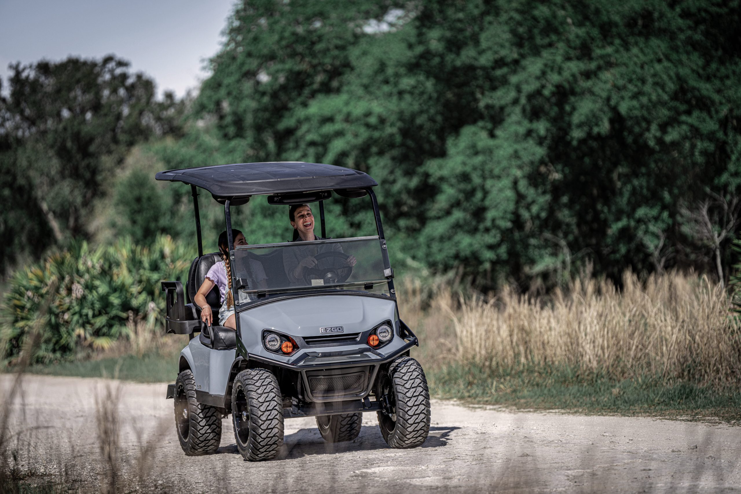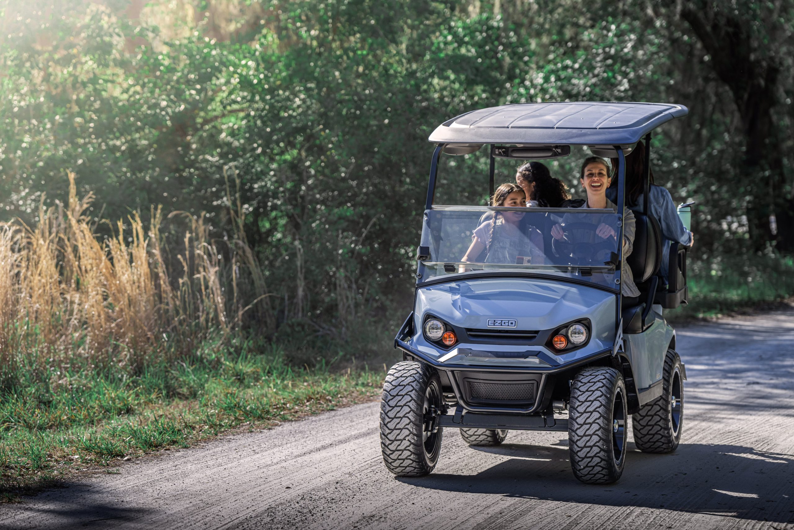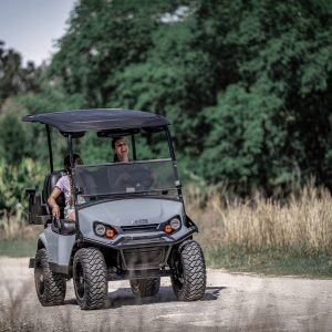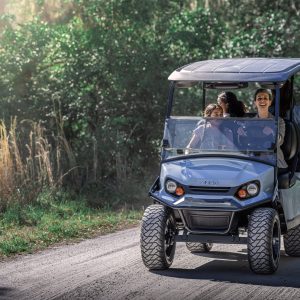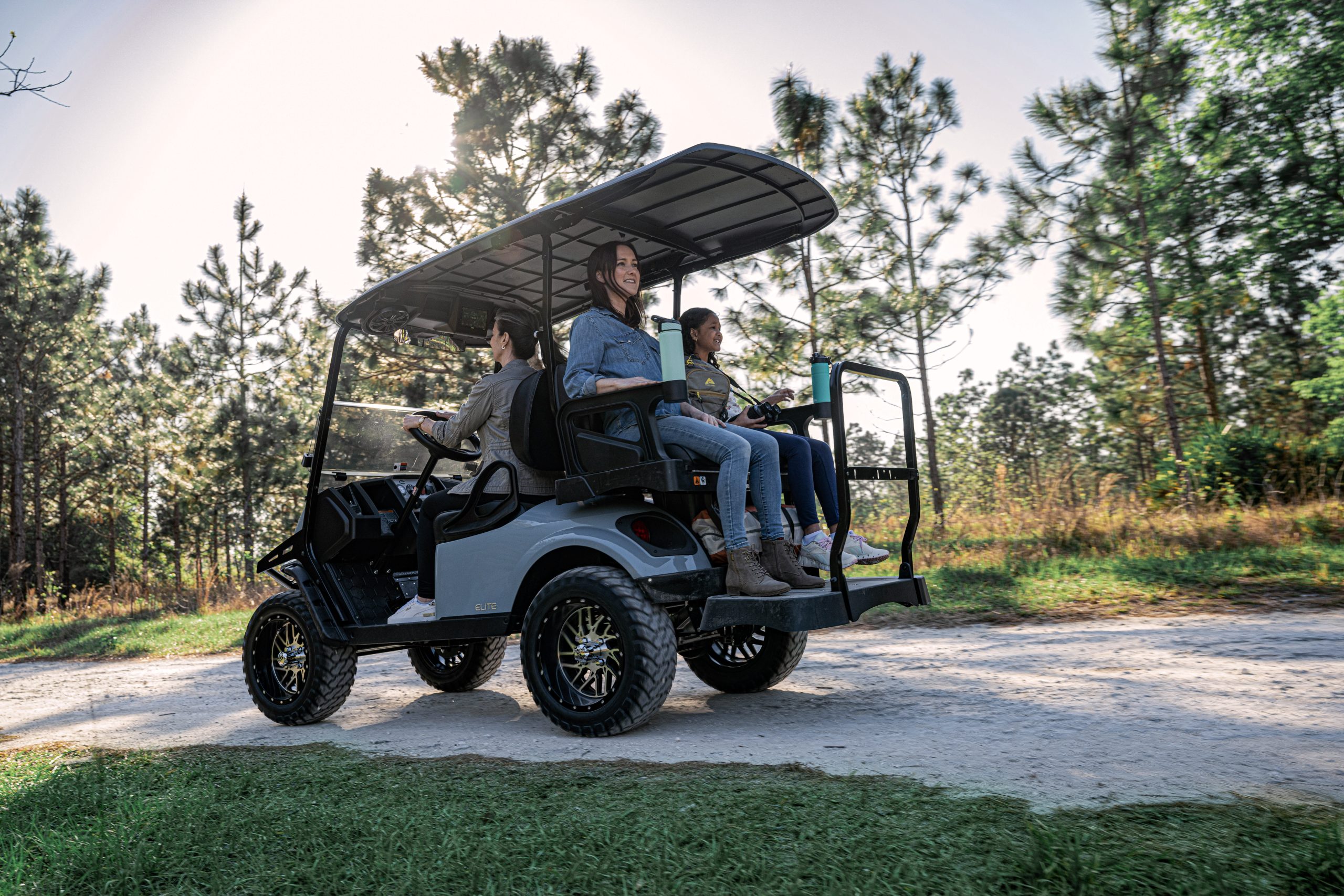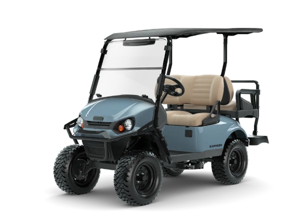 The 2022 EZGO Express S4 ELiTE is a lifted, lithium-powered 4-passenger golf cart designed to offer both performance and aesthetics. Finished in Ocean Gray with Premium Gray seating, it comes equipped with EZGO’s industry-leading ELiTE lithium battery system for faster charging, greater range, and zero battery maintenance.